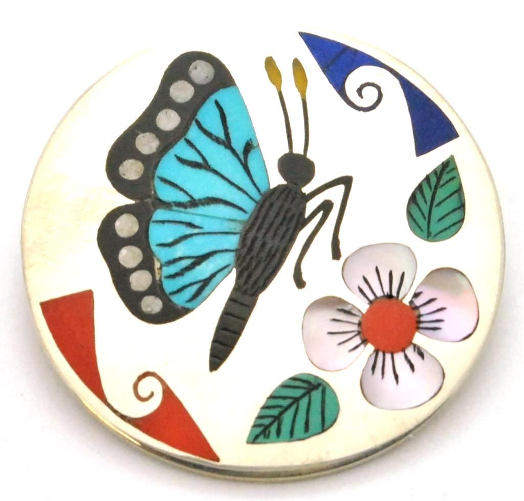 Zuni Multi-Stone Butterfly Sterling Silver Pendant & Pin - Rudell & Nancy Laconsello
