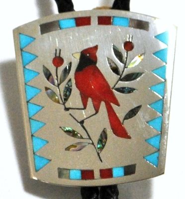 Zuni Multi-Stone Cardinal Sterling Silver Bolo Tie - Dennis & Nancy Edaakie