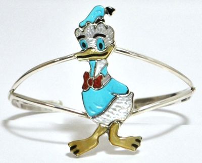 Zuni Multi-Stone Donald Duck Sterling Silver Cuff Bracelet - Andrea Shirley