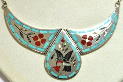 Zuni Multi-Stone Hummingbird Sterling Silver Necklace - Dennis & Nancy Edaakie