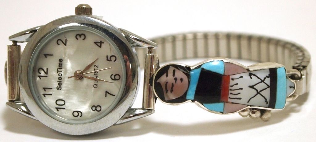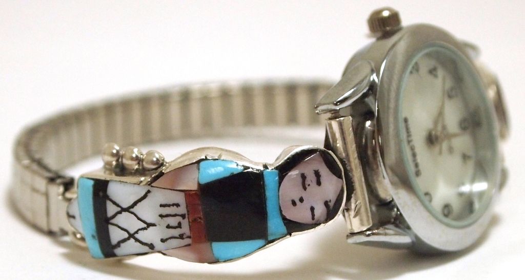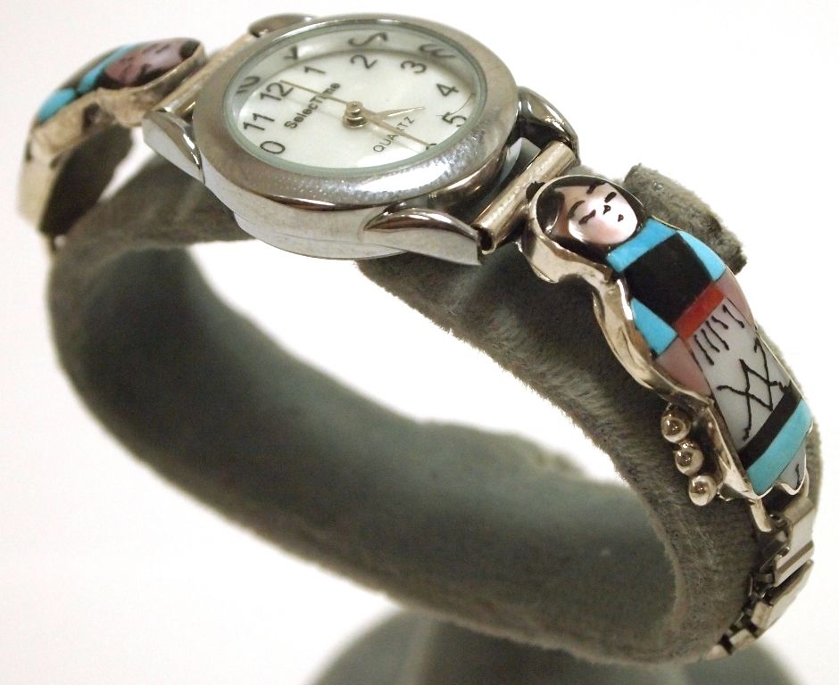 Zuni Multi-Stone Inlay Blue Maiden Sterling Silver Women's Watch - Joyce Waseta