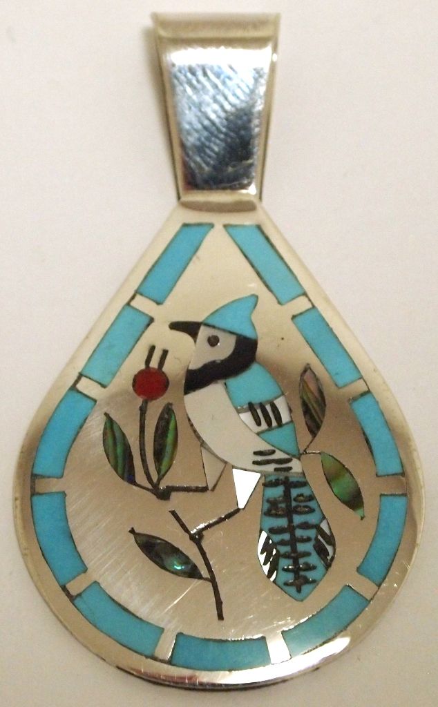 Zuni Multi-Stone Inlay Bluebird Sterling Silver Pendant - Dennis & Nancy Edaakie