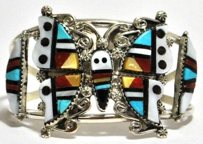 Zuni Multi-Stone Inlay Butterfly Sterling Silver Cuff Bracelet - Herbert Cellicion