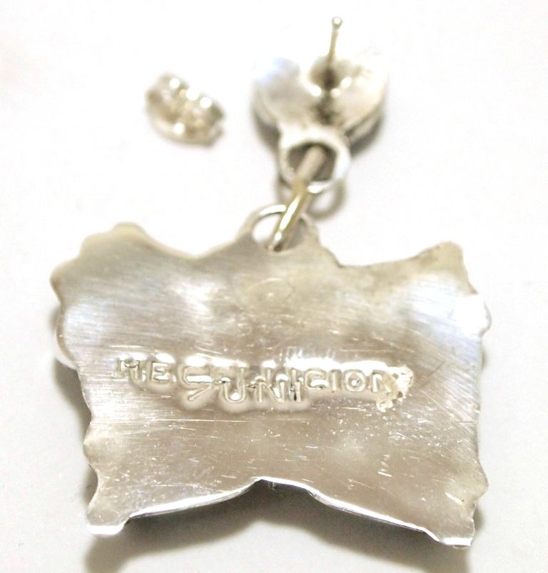 Measure 1-3/4" tall by 1" wide. Stones present: Mother of Pearl, Onyx, Coral, Turquoise.