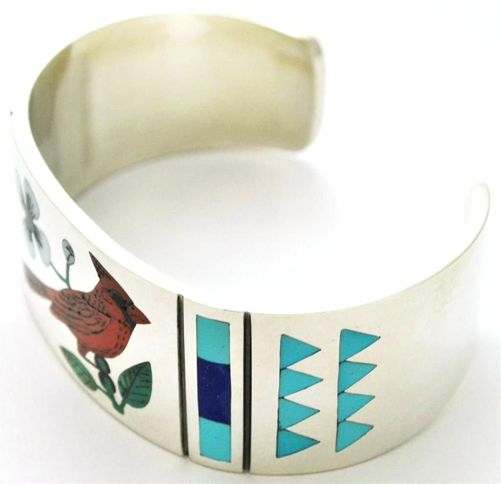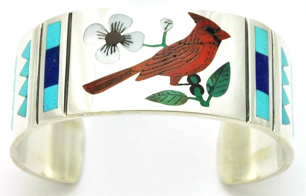 Zuni Multi-Stone Inlay Cardinal Sterling Silver Cuff Bracelet - Rudell & Nancy Laconsello