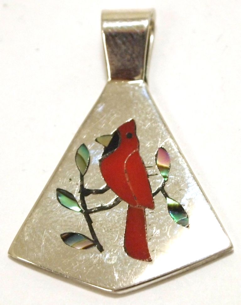 Zuni Multi-Stone Inlay Cardinal Sterling Silver Pendant - Sanford Edaakie