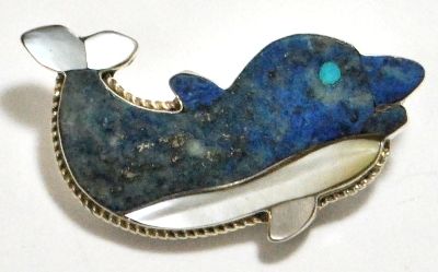 Zuni Multi-Stone Inlay Dolphin Sterling Silver Pendant & Pin - Darrel Shebola