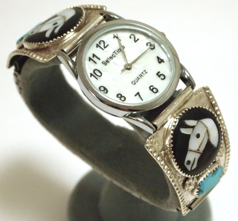 Zuni Multi-Stone Inlay Horse Sterling Silver Men's Watch - Isabelle Simplicio