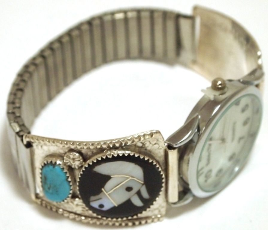 Zuni Multi-Stone Inlay Horse Sterling Silver Men's Watch - Isabelle Simplicio