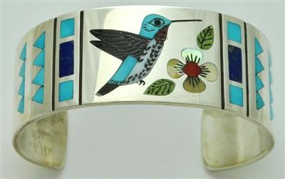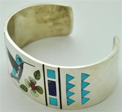 Zuni Multi-Stone Inlay Hummingbird Sterling Silver Cuff Bracelet - Rudell & Nancy Laconsello