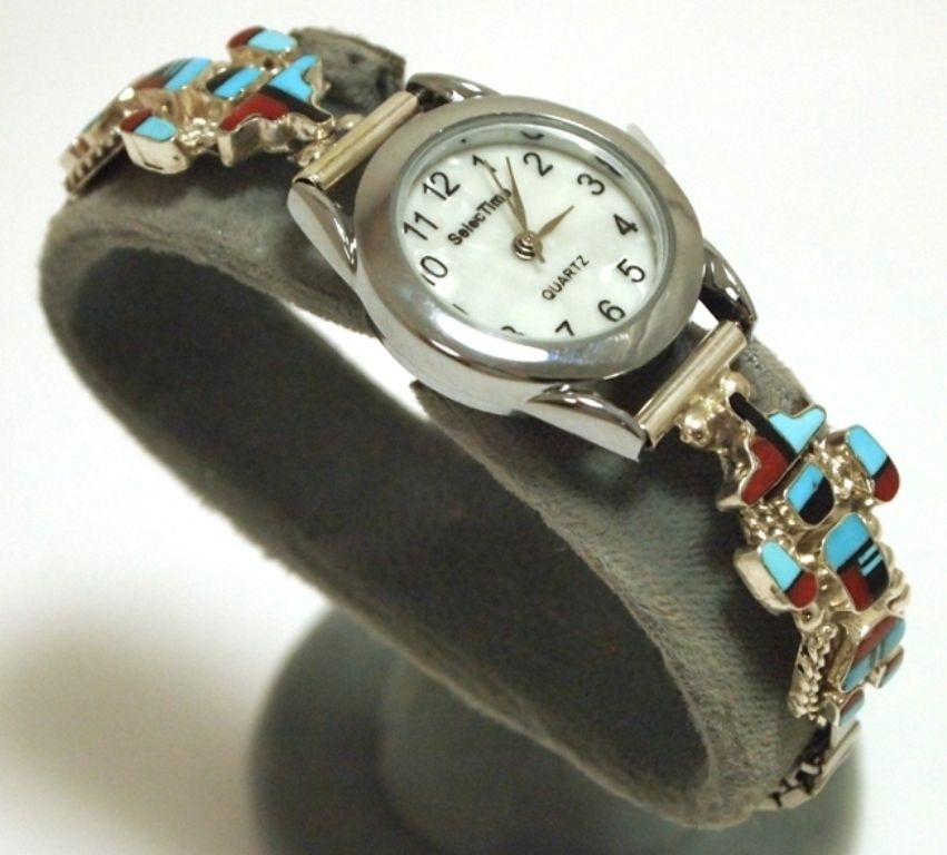 Zuni Multi-Stone Inlay Kachina Sterling Silver Women's Watch - Serena Johnson