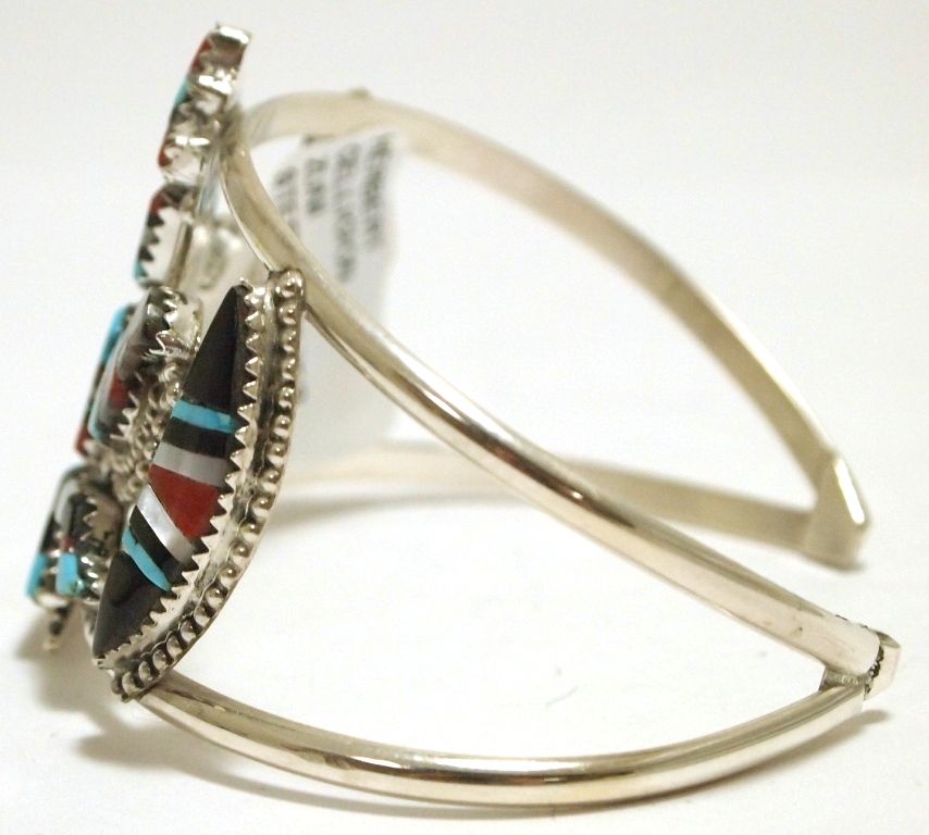Zuni Multi-Stone Inlay Knifewing Kachina Sterling Silver Cuff Bracelet - Herbert Cellicion
