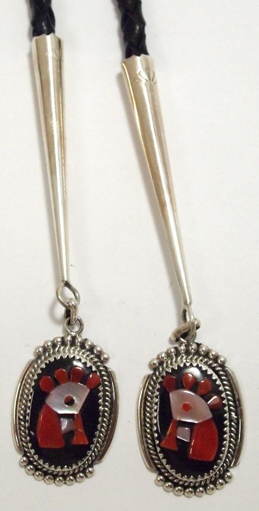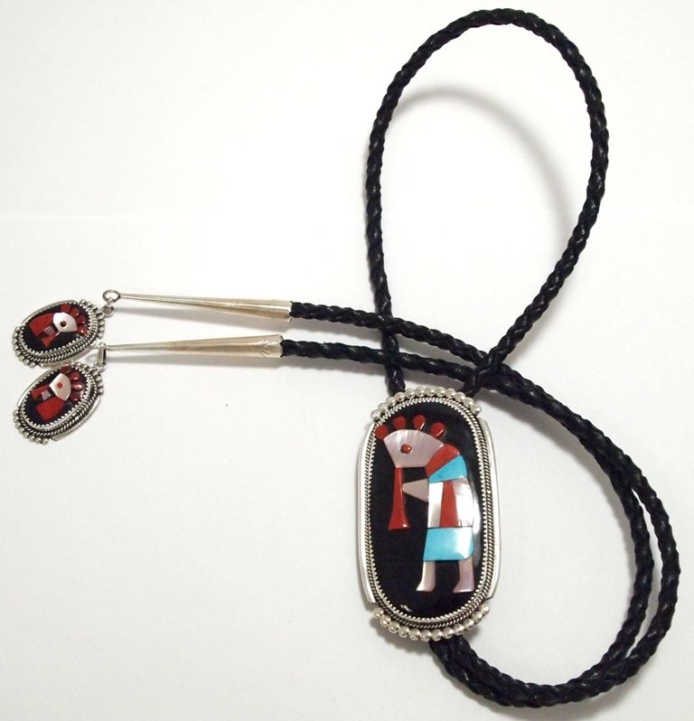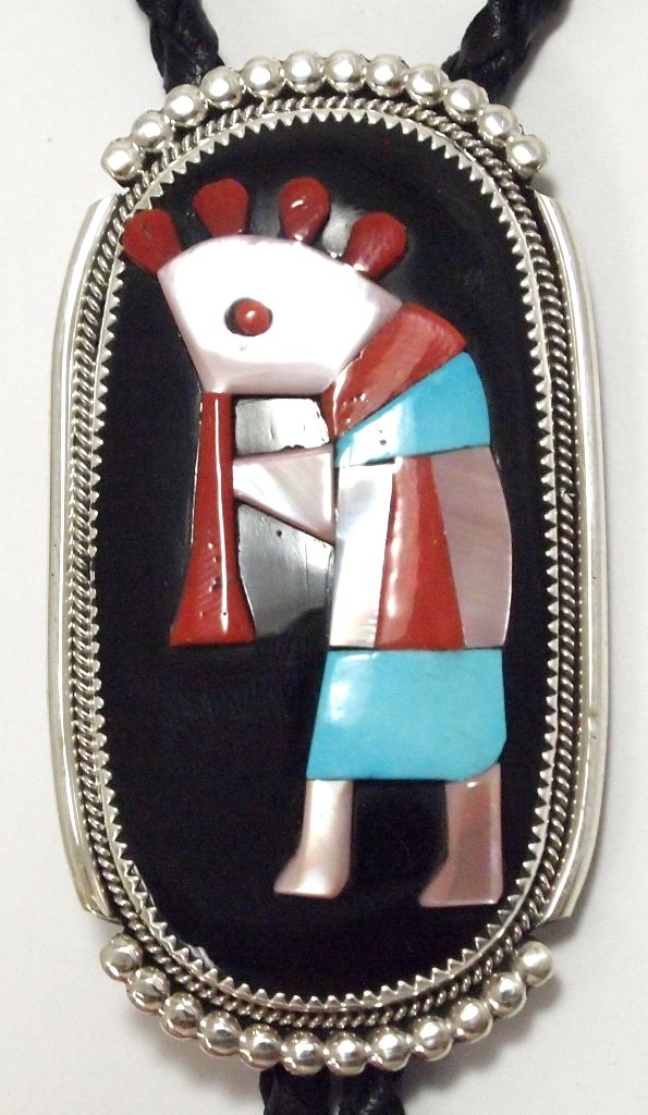 Zuni Multi-Stone Inlay Kokopelli Sterling Silver Bolo Tie - Beverly Etsate