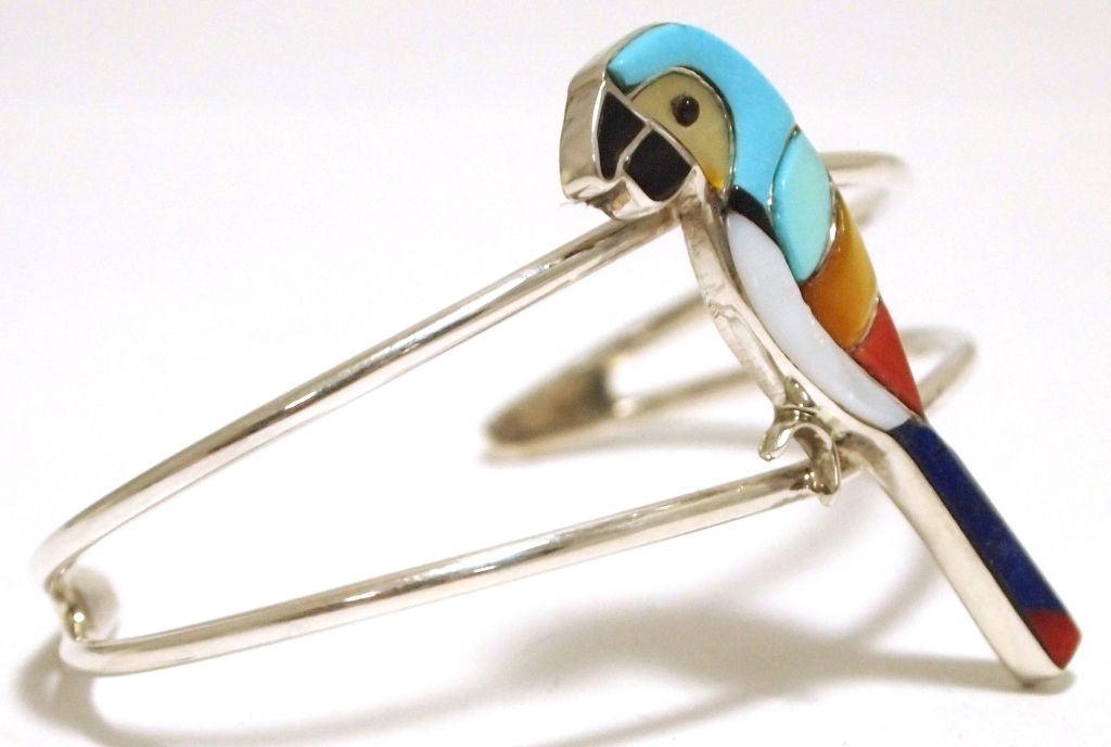 Zuni Multi-Stone Inlay Macaw Sterling Silver Cuff Bracelet - Ernie Ohmsatte