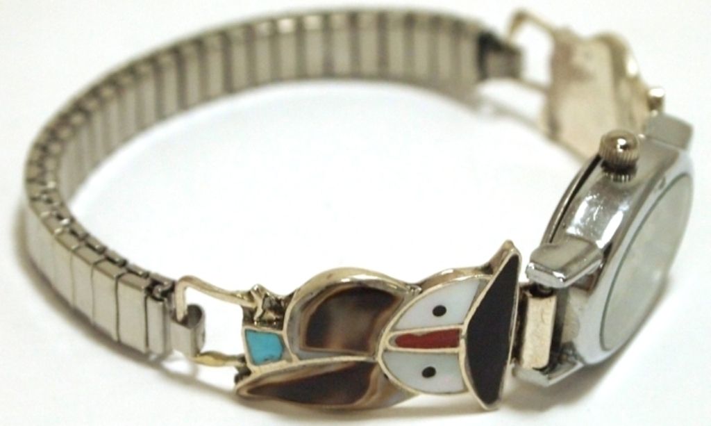 Zuni Multi-Stone Inlay Owl Sterling Silver Women's Watch - Pitkin Natewa