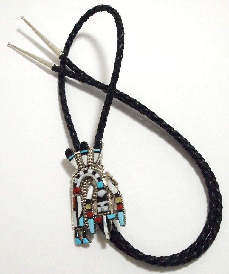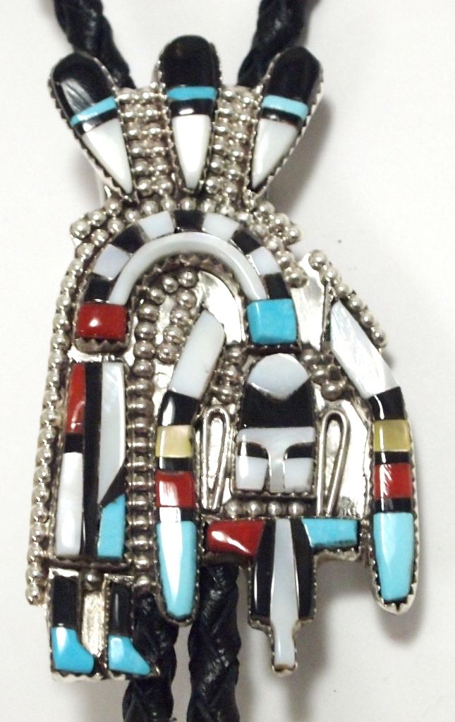 Zuni Multi-Stone Inlay Rainbow Kachina Sterling Silver Bolo Tie - Herbert Cellicion