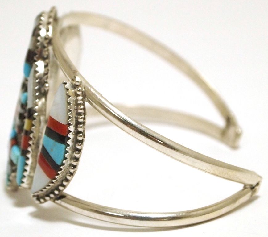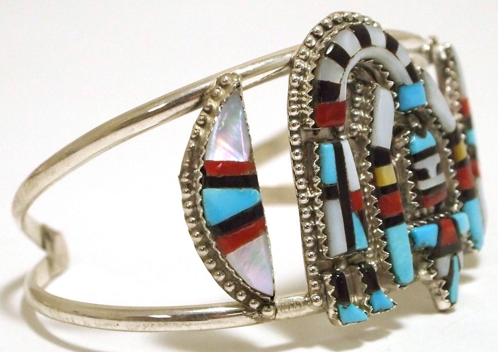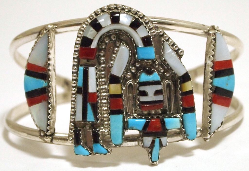 Zuni Multi-Stone Inlay Rainbow Kachina Sterling Silver Cuff Bracelet - Herbert Cellicion