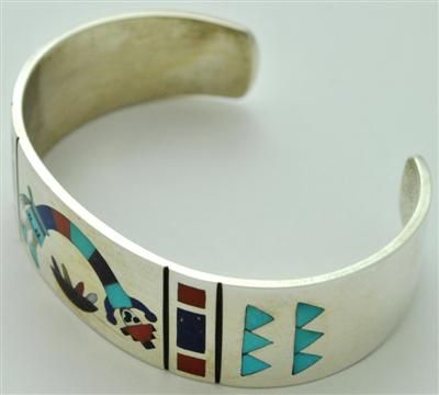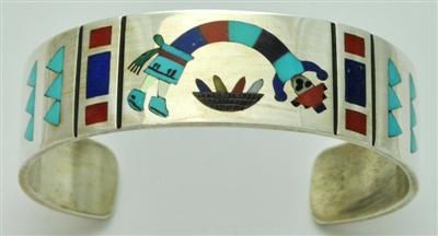 Zuni Multi-Stone Inlay Rainbow Kachina Sterling Silver Cuff Bracelet - Rudell & Nancy Laconsello