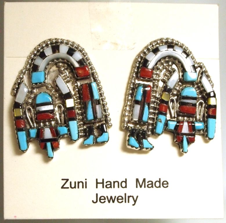 Zuni Multi-Stone Inlay Rainbow Kachina Sterling Silver Necklace & Earrings Set - Herbert Cellicion