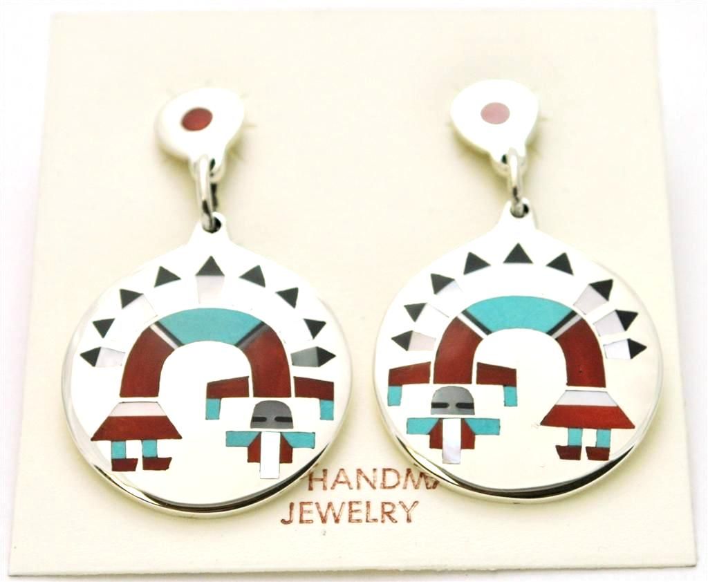 Zuni Multi-Stone Inlay Rainbow Kachina Sterling Silver Post Earrings - Fred & Lolita Natachu