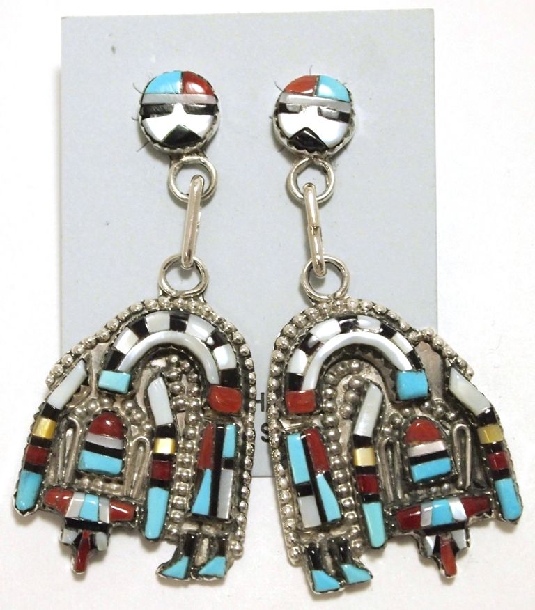 Zuni Multi-Stone Inlay Rainbow Kachina Sterling Silver Post Earrings - Herbert Cellicion