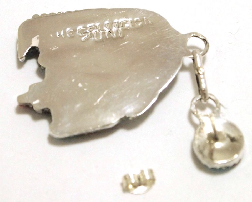 Measure 2-1/4" tall by 1" wide. Stones present: Mother of Pearl, Onyx, Coral, Turquoise.