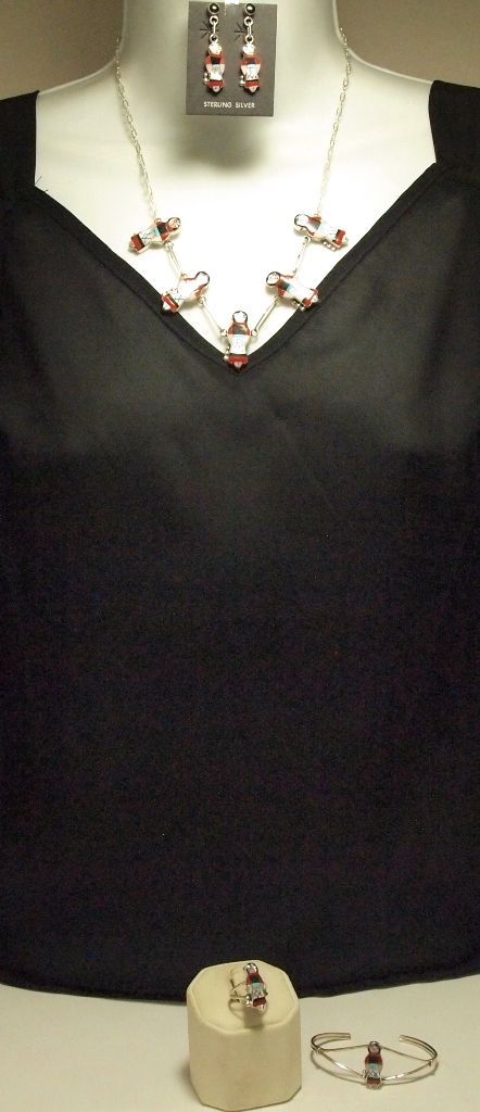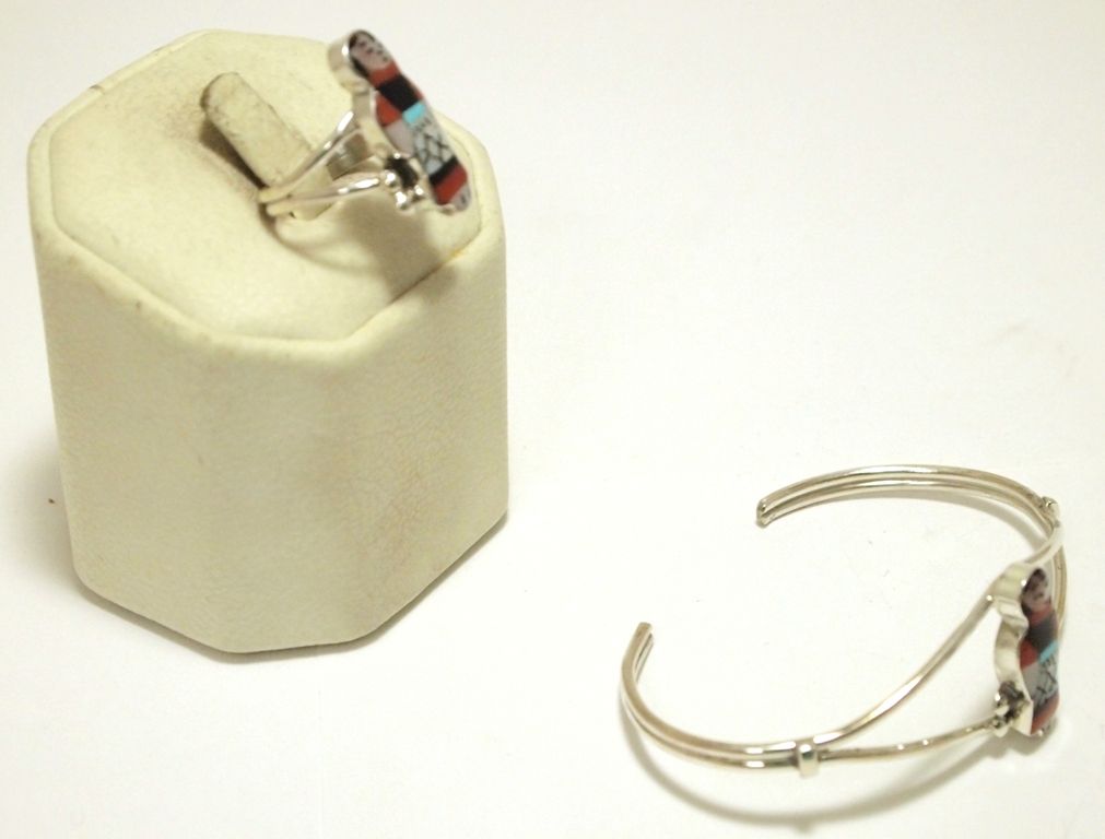 Zuni Multi-Stone Inlay Red Maiden Sterling Silver 4-Piece Set - Joyce Waseta