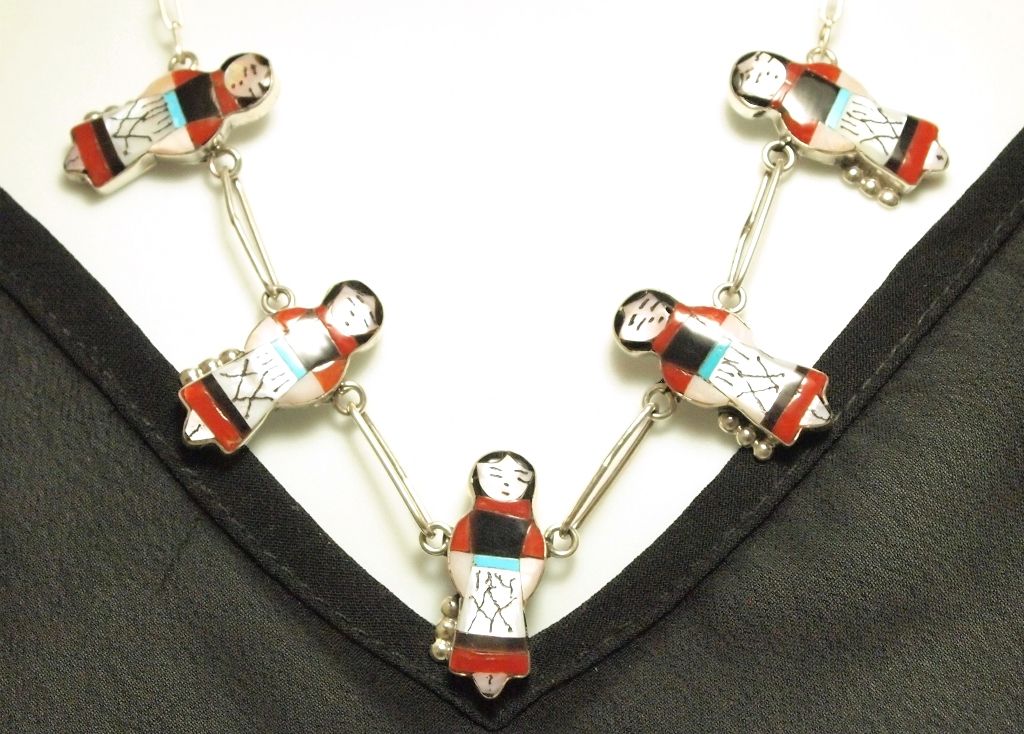 Necklace: Measures 20" around. Five maidens each measure 1-1/8" tall by 7/16" wide. Weight: 19.6g.