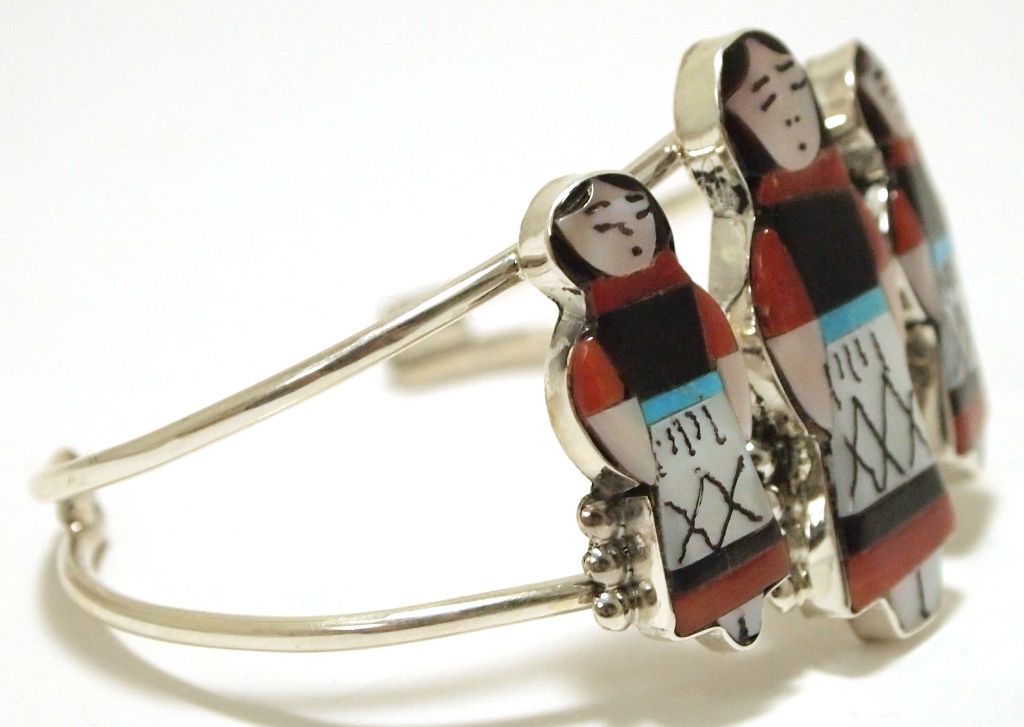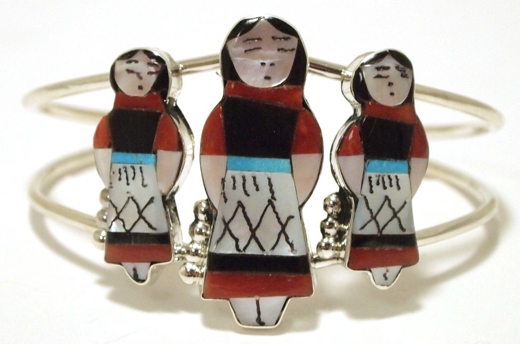 Zuni Multi-Stone Inlay Red Maiden Sterling Silver Cuff Bracelet - Joyce Waseta