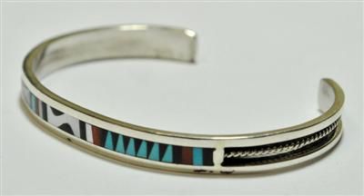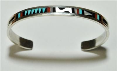 Zuni Multi-Stone Inlay Sterling Silver Cuff Bracelet - C. Dishta