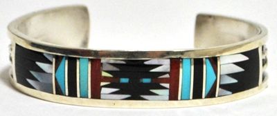 Zuni Multi-Stone Inlay Sterling Silver Cuff Bracelet - Charlotte Dishta