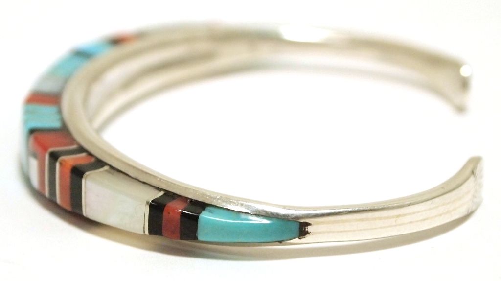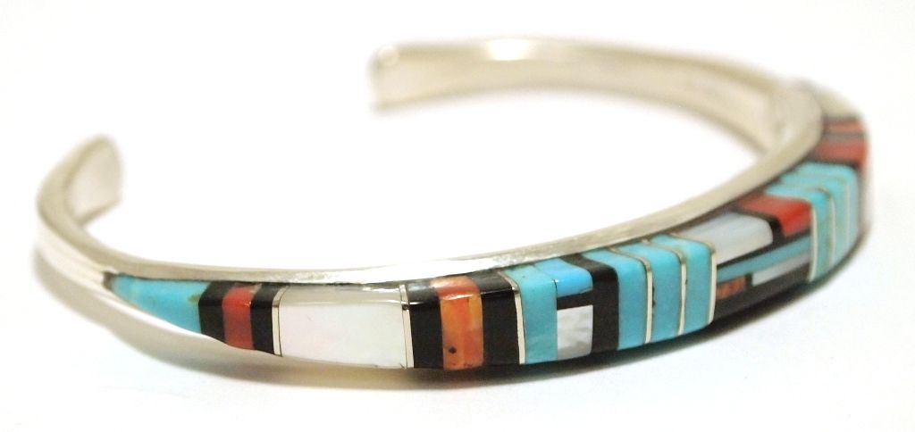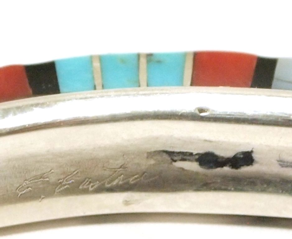 Zuni Multi-Stone Inlay Sterling Silver Cuff Bracelet - E Eustace - 16.8g