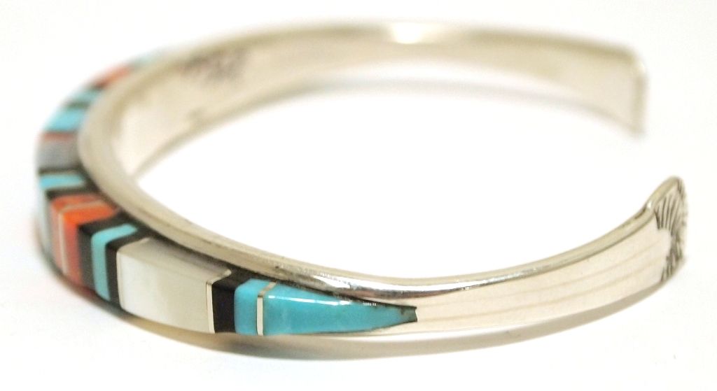 Zuni Multi-Stone Inlay Sterling Silver Cuff Bracelet - Erma Eustace - 16.3g