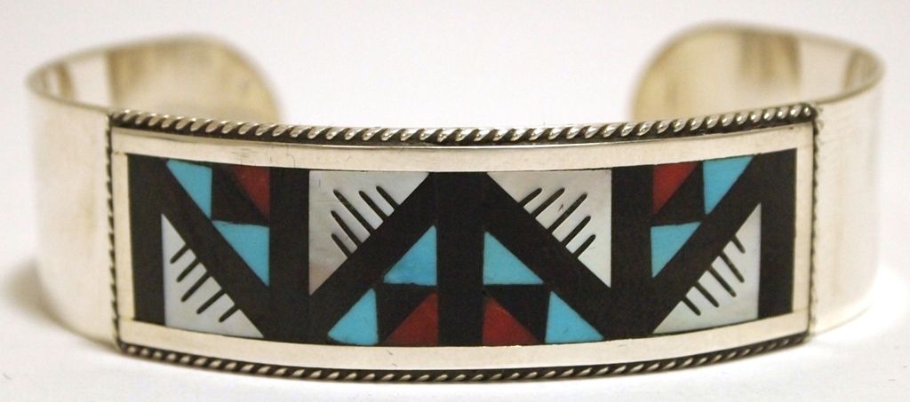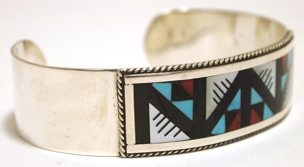 Zuni Multi-Stone Inlay Sterling Silver Cuff Bracelet - Leander & Lisa Otholi