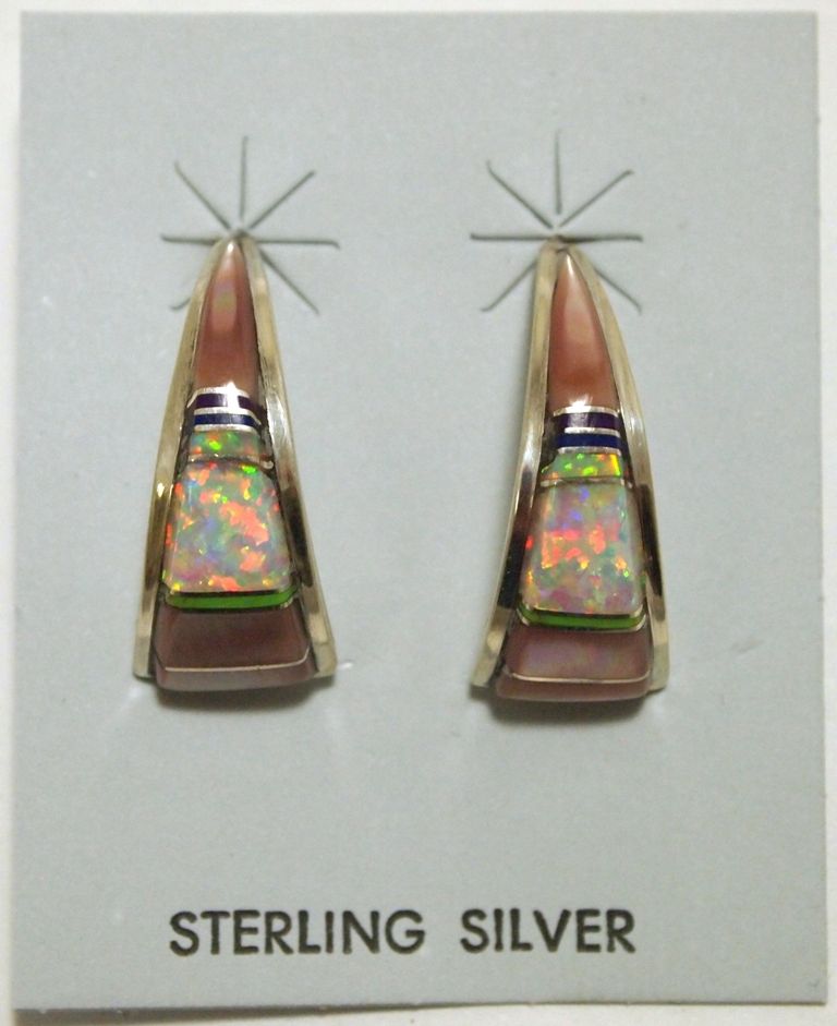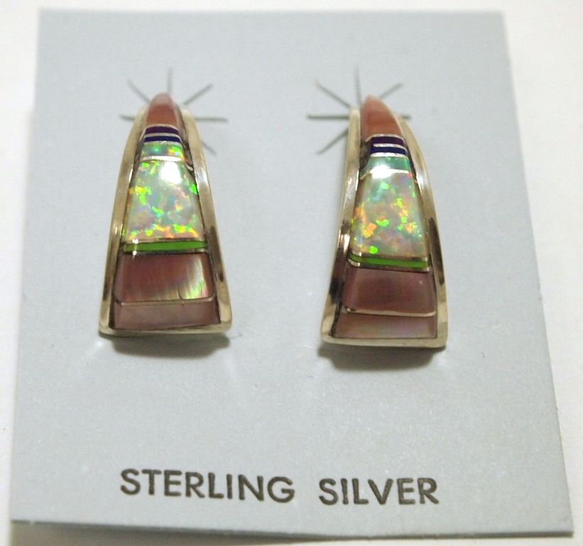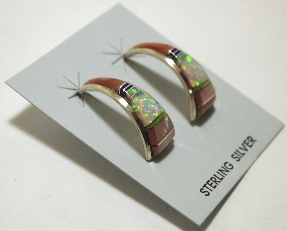 Zuni Multi-Stone Inlay Sterling Silver Curved Post Earrings - C.S. Lonjose