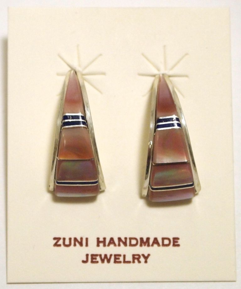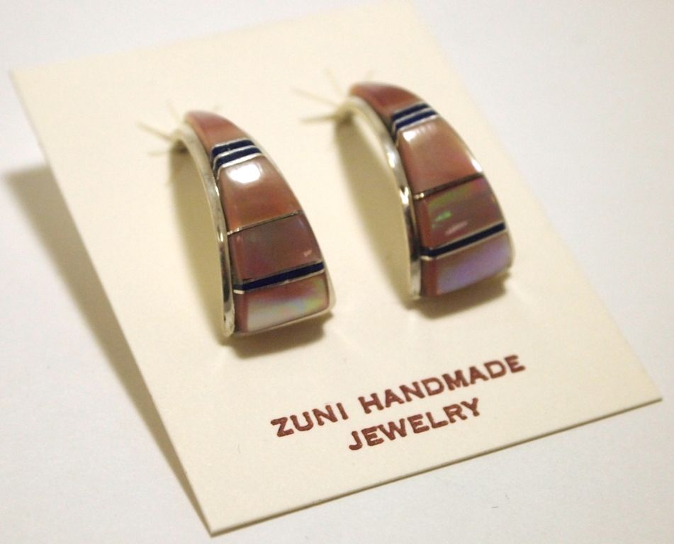 Zuni Multi-Stone Inlay Sterling Silver Curved Post Earrings - C.S. Lonjose