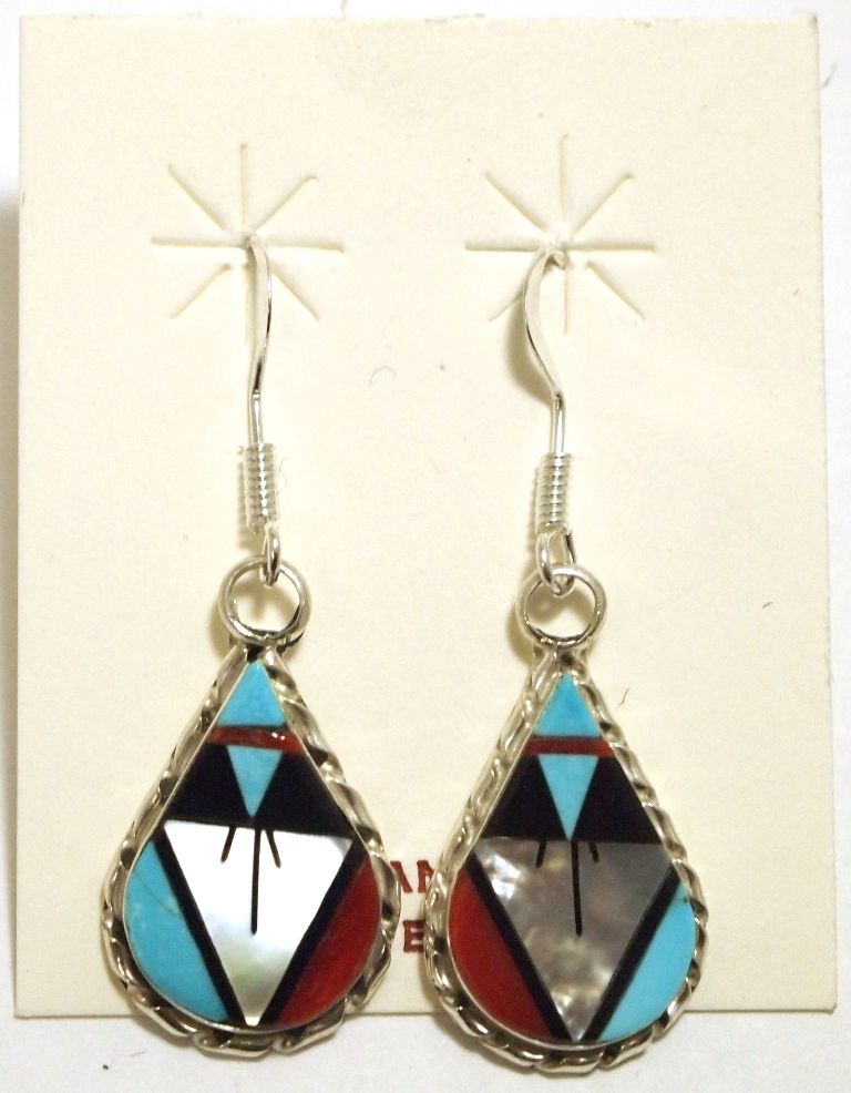 Zuni Multi-Stone Inlay Sterling Silver French Hook Earrings - Carol Niiha