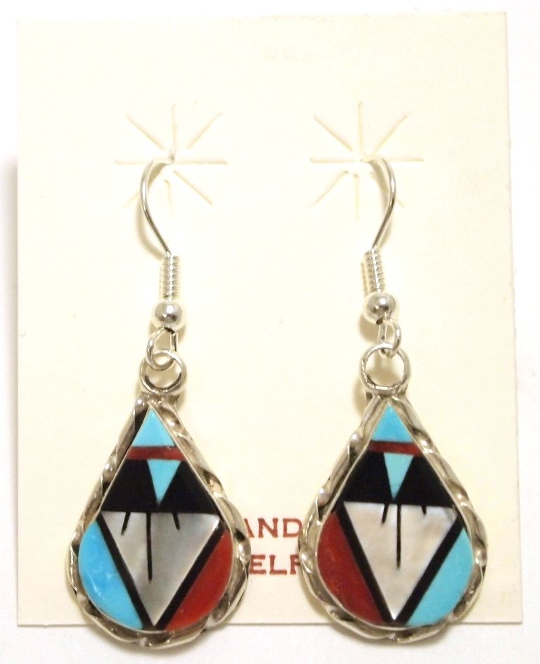 Zuni Multi-Stone Inlay Sterling Silver French Hook Earrings - Carol Niiha