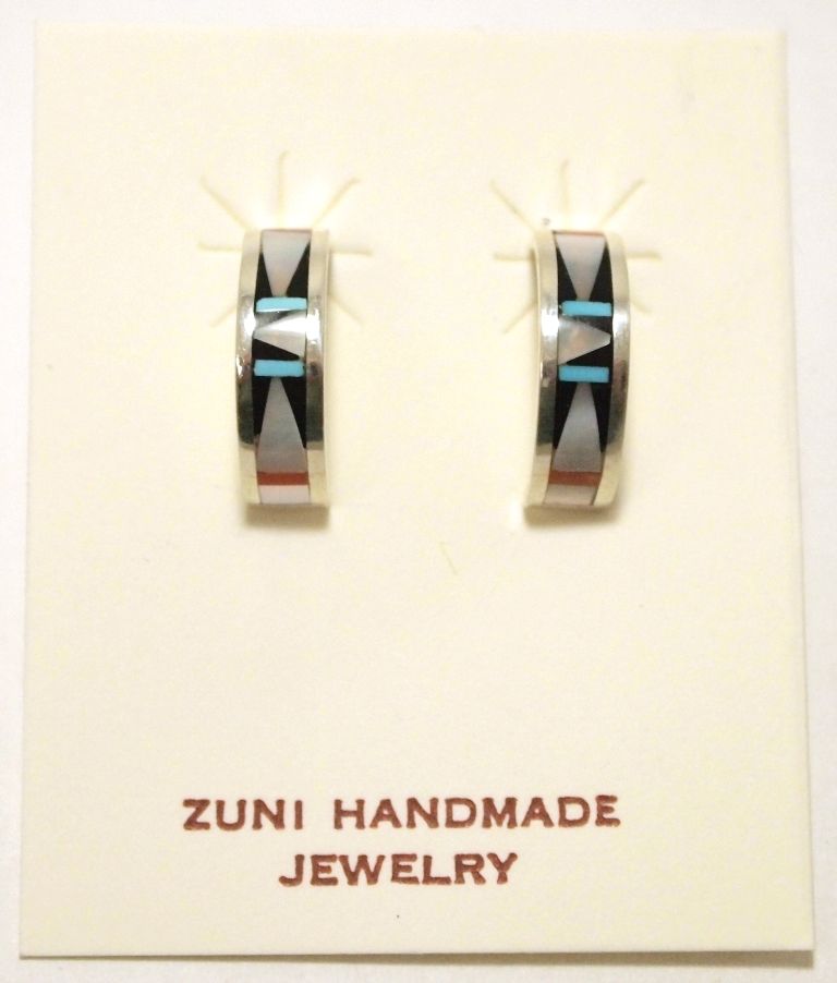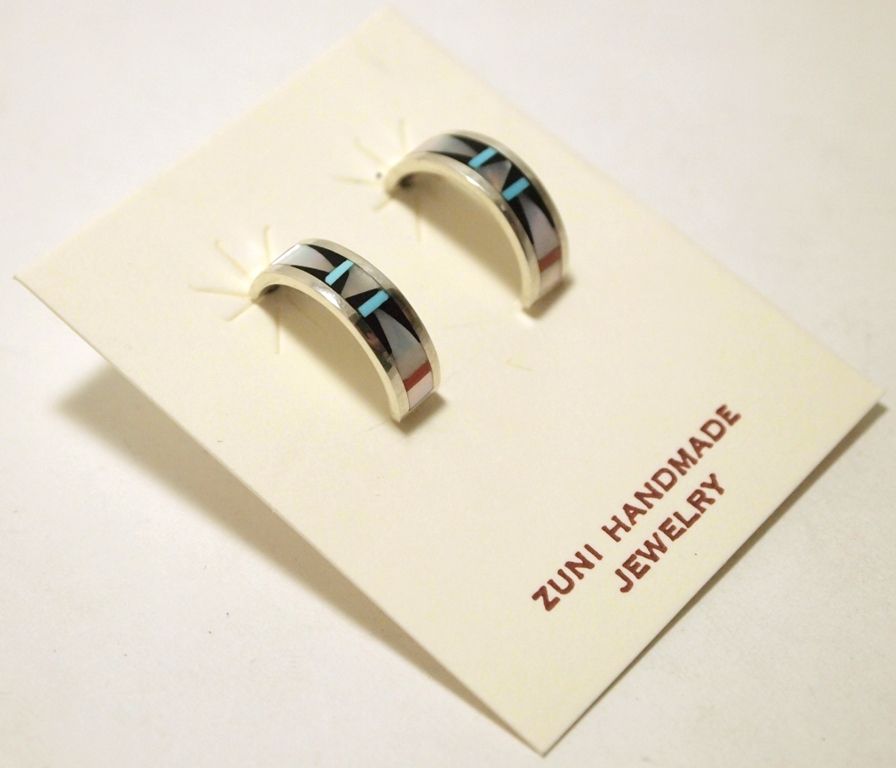 Zuni Multi-Stone Inlay Sterling Silver Half-Ring Post Earrings - Grace Nyamutowa