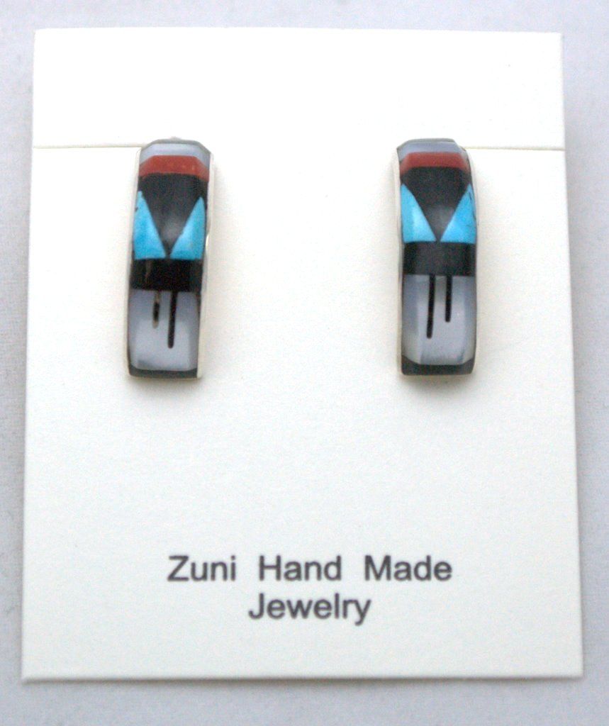 Zuni Multi-Stone Inlay Sterling Silver Half-Ring Post Earrings - Leif Esalio