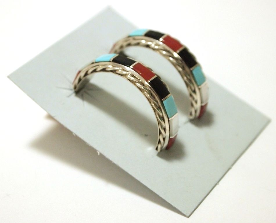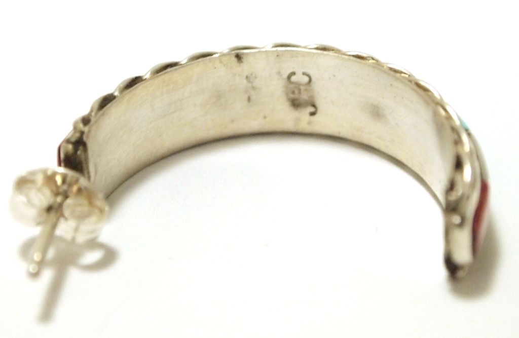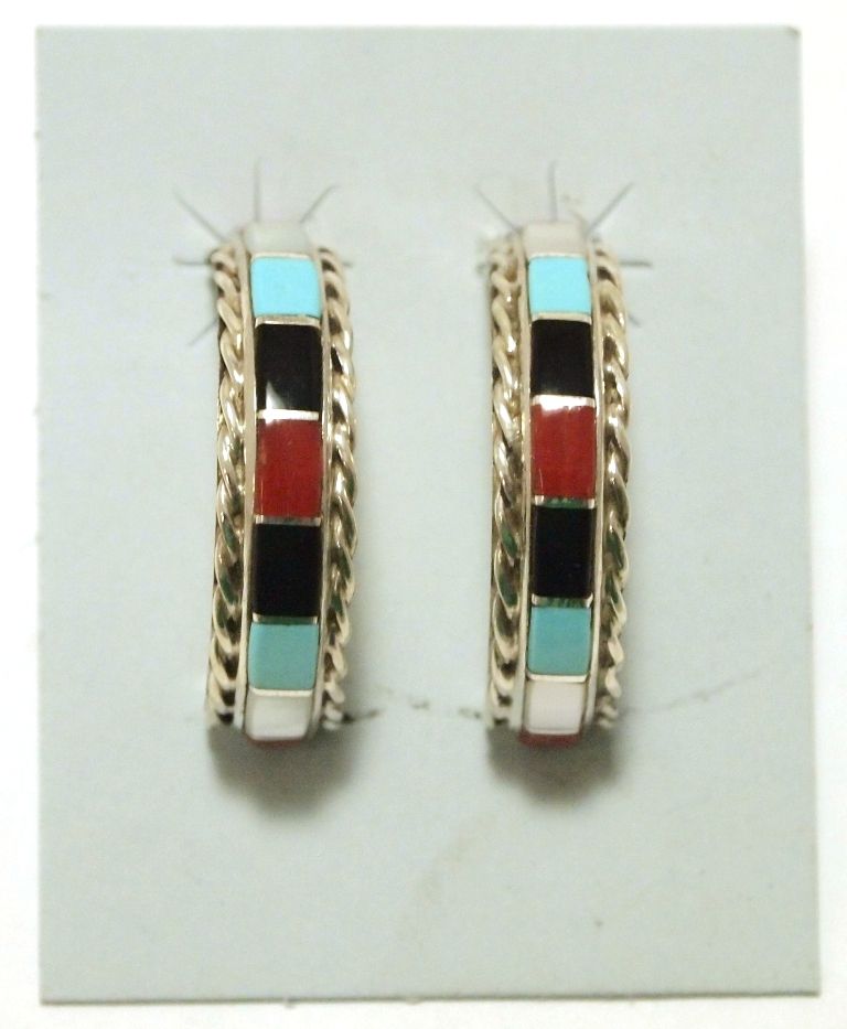 Zuni Multi-Stone Inlay Sterling Silver Half-Ring Post Earrings - Malcolm Chavez