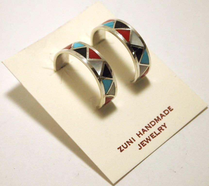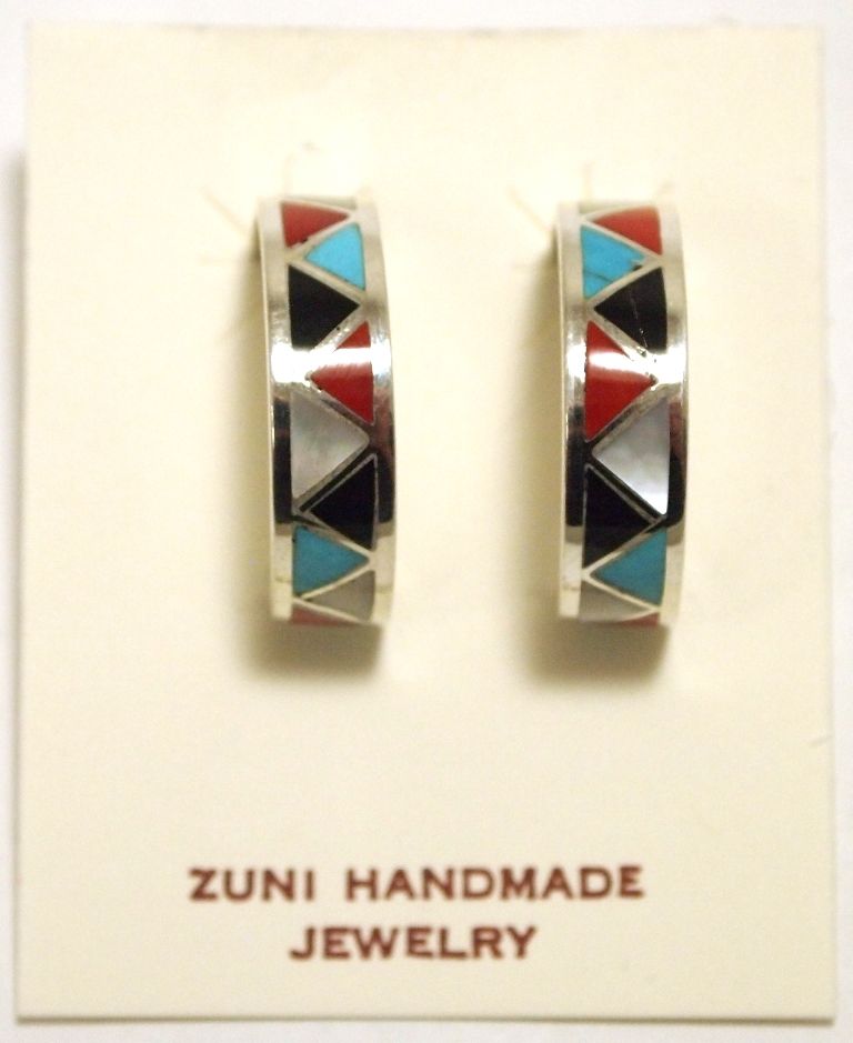 Zuni Multi-Stone Inlay Sterling Silver Half-Ring Post Earrings - Tina Haloo