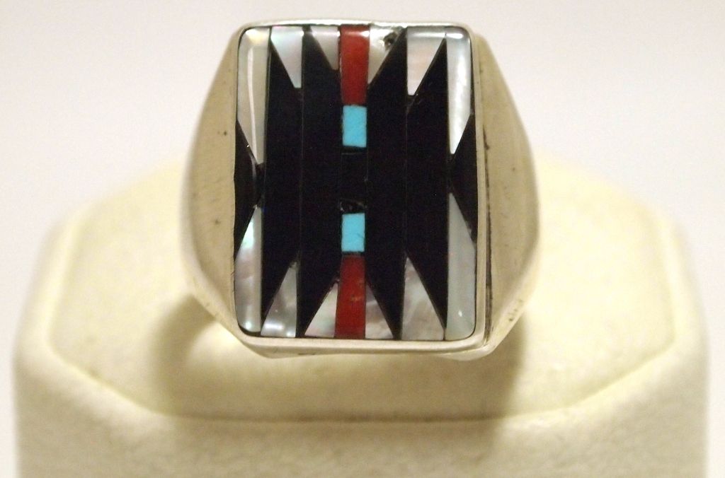 Zuni Multi-Stone Inlay Sterling Silver Men's Ring - Charlotte Dishta