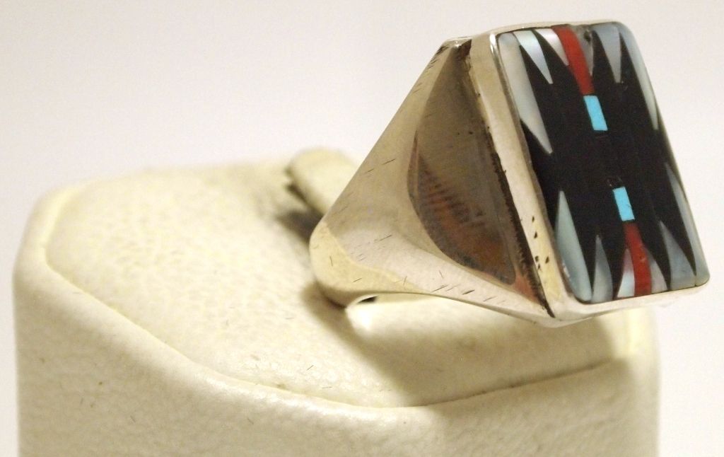Zuni Multi-Stone Inlay Sterling Silver Men's Ring - Charlotte Dishta