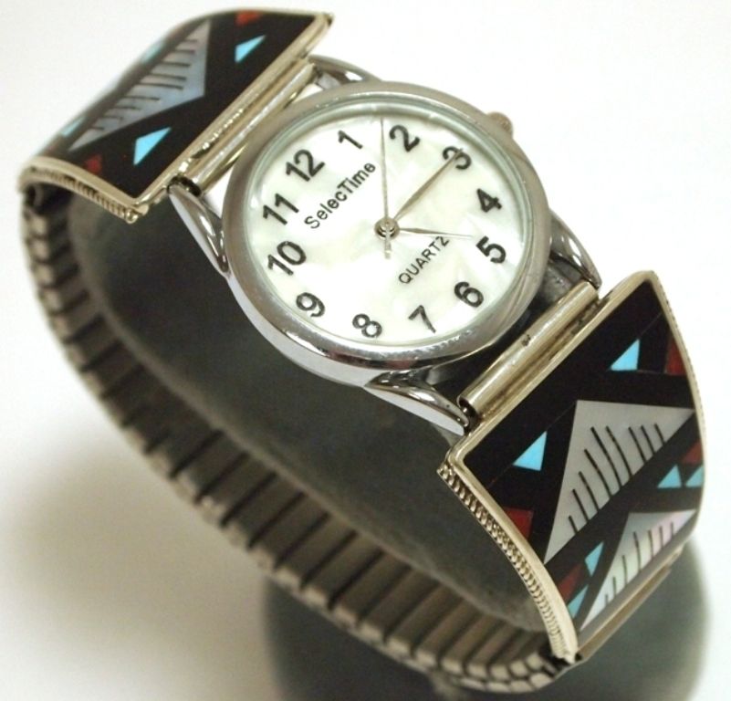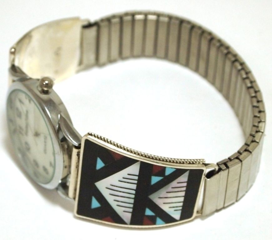 Zuni Multi-Stone Inlay Sterling Silver Men's Watch - Leander & Lisa Otholi
