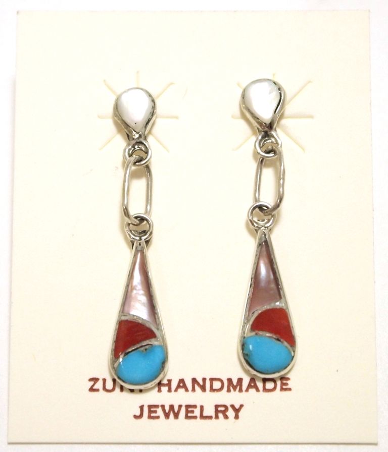 Measure 1-1/4" tall by 1/4" wide. Stones present: Mother of Pearl, Coral, Turquoise.