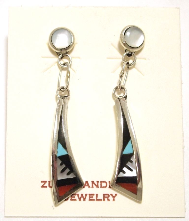 Zuni Multi-Stone Inlay Sterling Silver Post Earrings - Melviana Boone