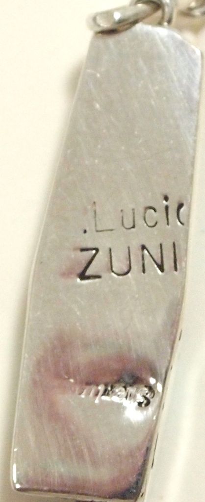 Measure 1-3/4" tall by 5/16" wide. Stones present: Mother of Pearl, Coral, Turquoise, Black Jet.