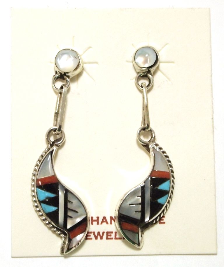 Zuni Multi-Stone Inlay Sterling Silver Post Earrings - Sylvester Boone