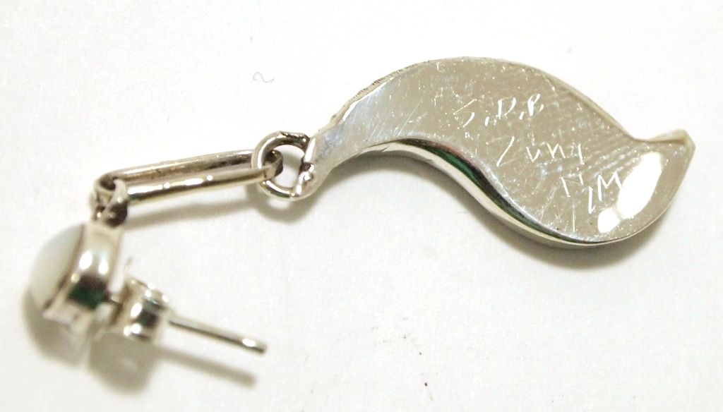 Measure 1-5/8" tall by 7/16" wide. Stones present: Mother of Pearl, Coral, Onyx, Turquoise.